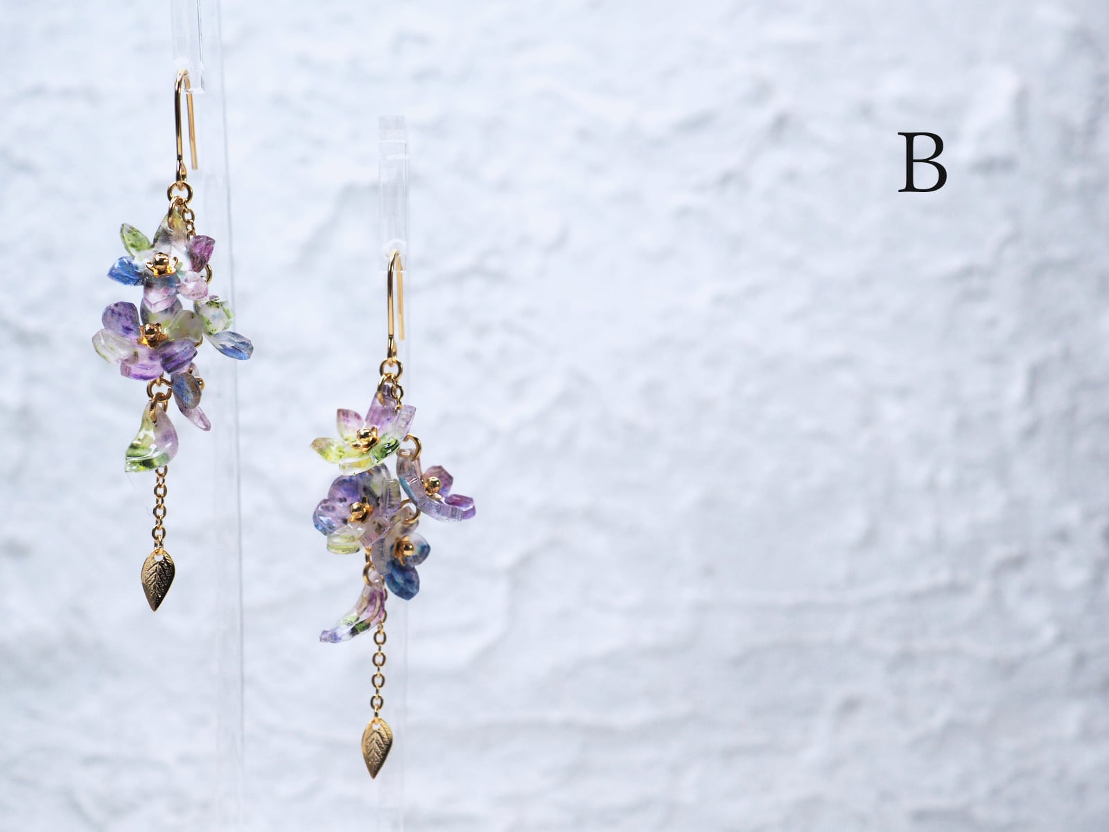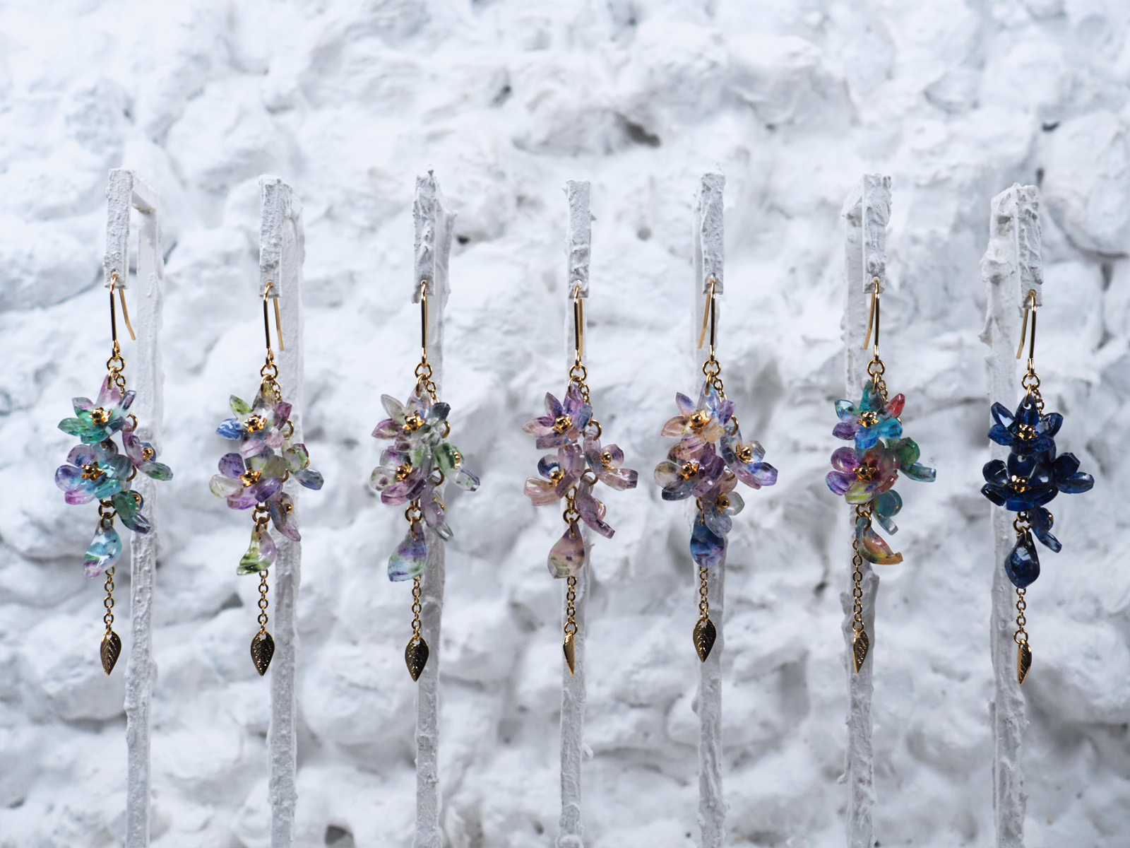 これまで統一して採用していた金具を変え、さりげなく入れた葉もポイントです。
